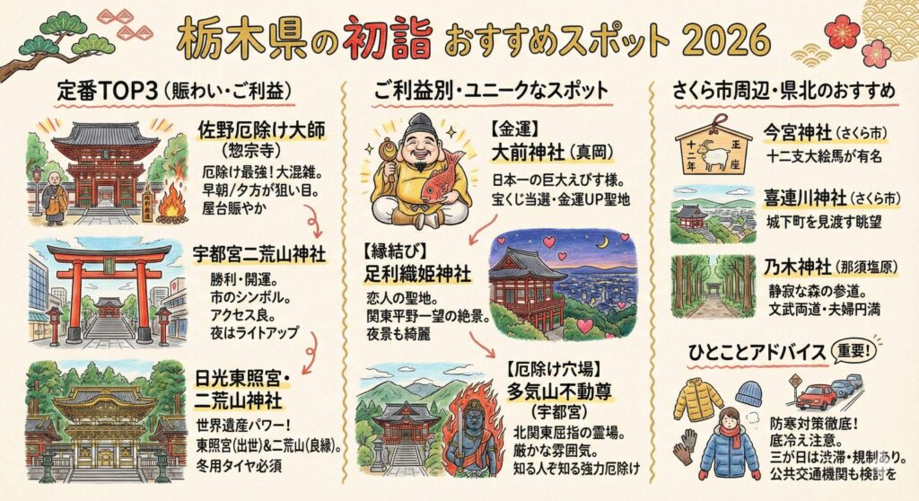 栃木県には、個性豊かでご利益たっぷりの初詣スポットがたくさんあります。
