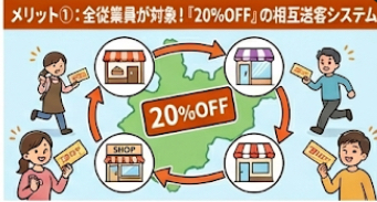 メリット①:全従業員が対象!「20%OFF」の相互送客システム