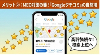 メリット②:MEO対策の要!「Googleクチコミ」の自然増