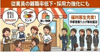 「あのお店で働くと、宇都宮中のいろんなお店が安くなるらしいよ」 そんな口コミが広がれば、従業員の満足度が上がり、離職率の低下につながります 。