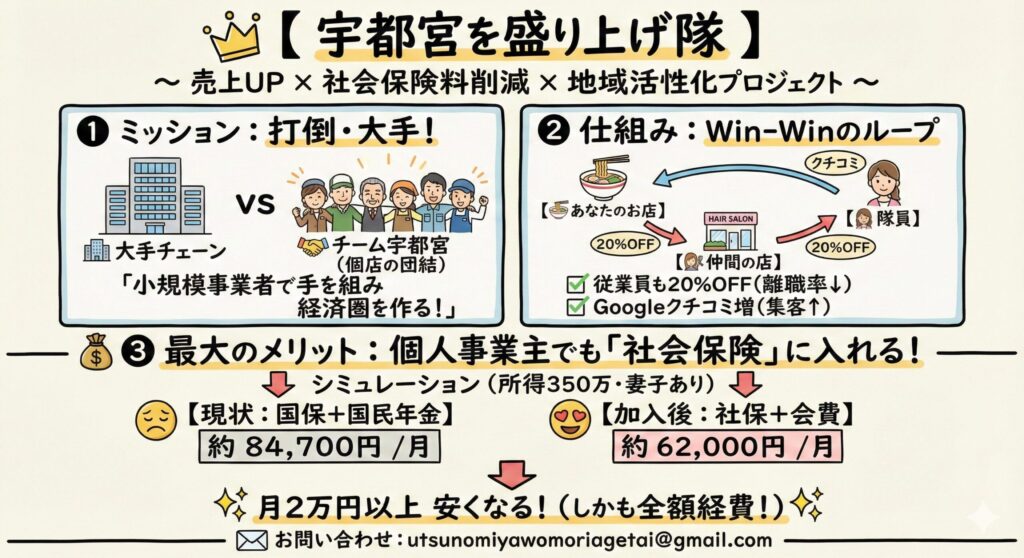 今回は、宇都宮の地域経済を底上げし、小規模事業者が手を取り合って勝つための画期的なプロジェクト「宇都宮を盛り上げ隊」の全貌を、その驚きのメリットと共に徹底解説します。